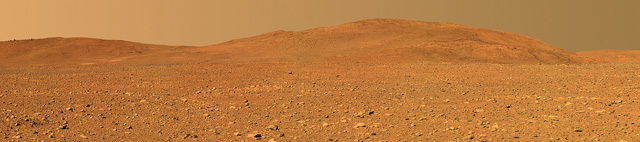 This image from the panoramic camera on NASA's Mars Exploration Rover Spirit shows a forward-looking view of a portion of the "Columbia Hills." This portion features "Husband Hill" to the left, "West Spur" in the center, and a talus (rock debris) slope to the right. West Spur is Spirit's planned first stop at the hills. Husband Hill measures approximately 90 meters (295 feet) tall from the base of the hills to its highest peak. Even in this distant shot, large boulders can be seen on the hillside. These boulders are of great interest to scientists, as they may reveal clues about how these hills formed.