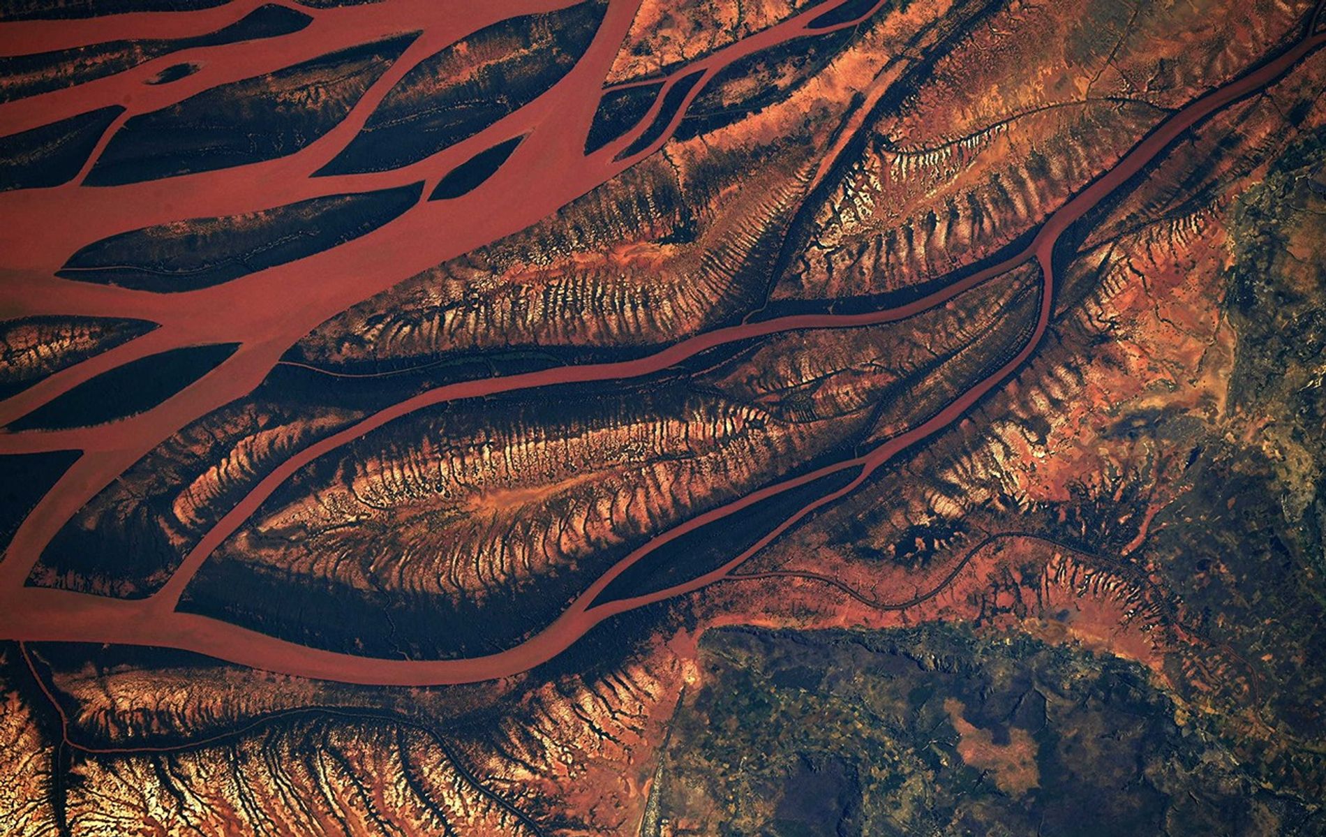 As the International Space Station flew overhead, NASA astronaut Ricky Arnold captured this photograph of a changing landscape in the heart of Madagascar, observing drainage into the sea in the Betsiboka Estuary due to decimation of rainforests and coastal mangroves.