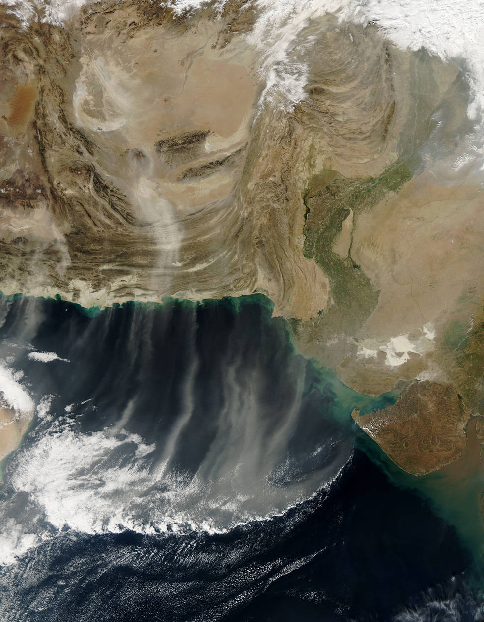 Dust plumes from Iran, Afghanistan and Pakistan blow southward over the Arabian Sea, Dec. 28, 2012.