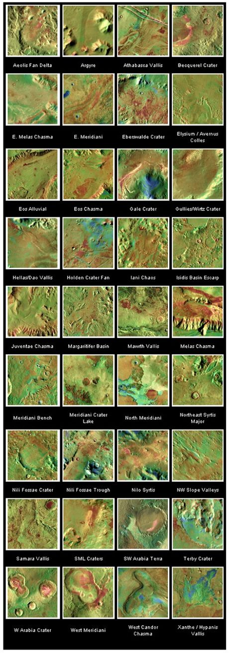 Finding the right landing site is a little like a treasure hunt, using a variety of clues from the Mars Odyssey and other orbiters. The objective is to find a smooth yet firm landing site within reach of interesting places to explore. Mars Odyssey images help scientists differentiate dusty, sandy areas from rocky areas.