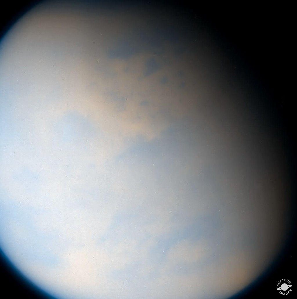 Maksim writes: “I create color images out of raw, black & white Cassini images using PaintShop Pro or Photoshop. This usually involves making RGB composites out of the visible, infrared or ultraviolet data. I always enjoy seeing space objects in color, and love bringing out details normally invisible to the human eye.”
