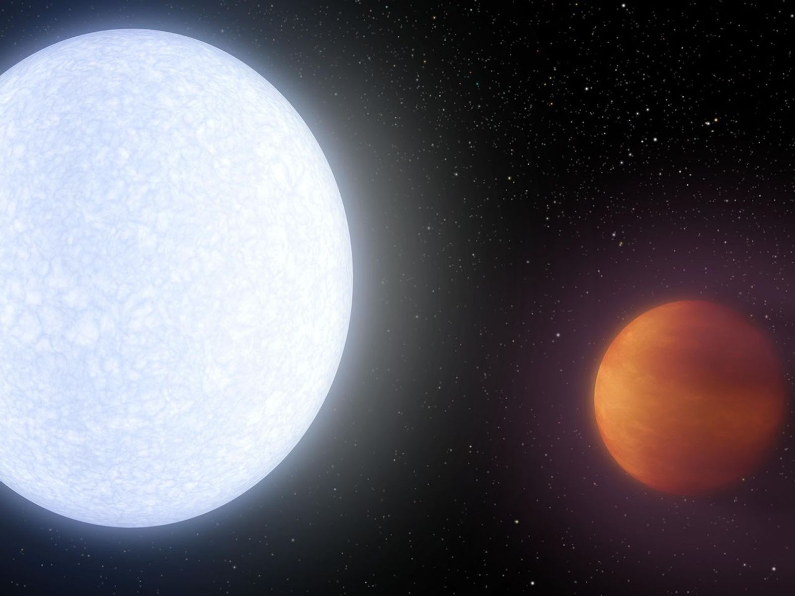 This artist's concept shows planet KELT-9b orbiting its host star, KELT-9. It is one of the hottest gas giant planets discovered so far.