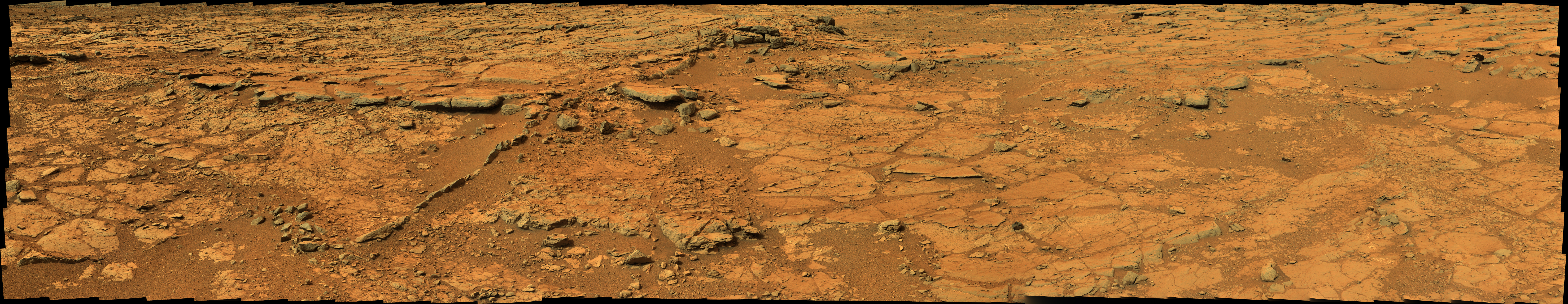 From a position in the shallow "Yellowknife Bay" depression, NASA's Mars rover Curiosity used its right Mast Camera (Mastcam) to take the telephoto images combined into this panorama of geological diversity.
