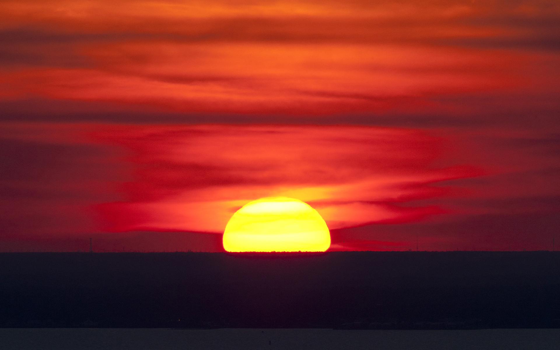 The sun sets over NASA's Kennedy Space Center in Florida, on October 13, 2010.