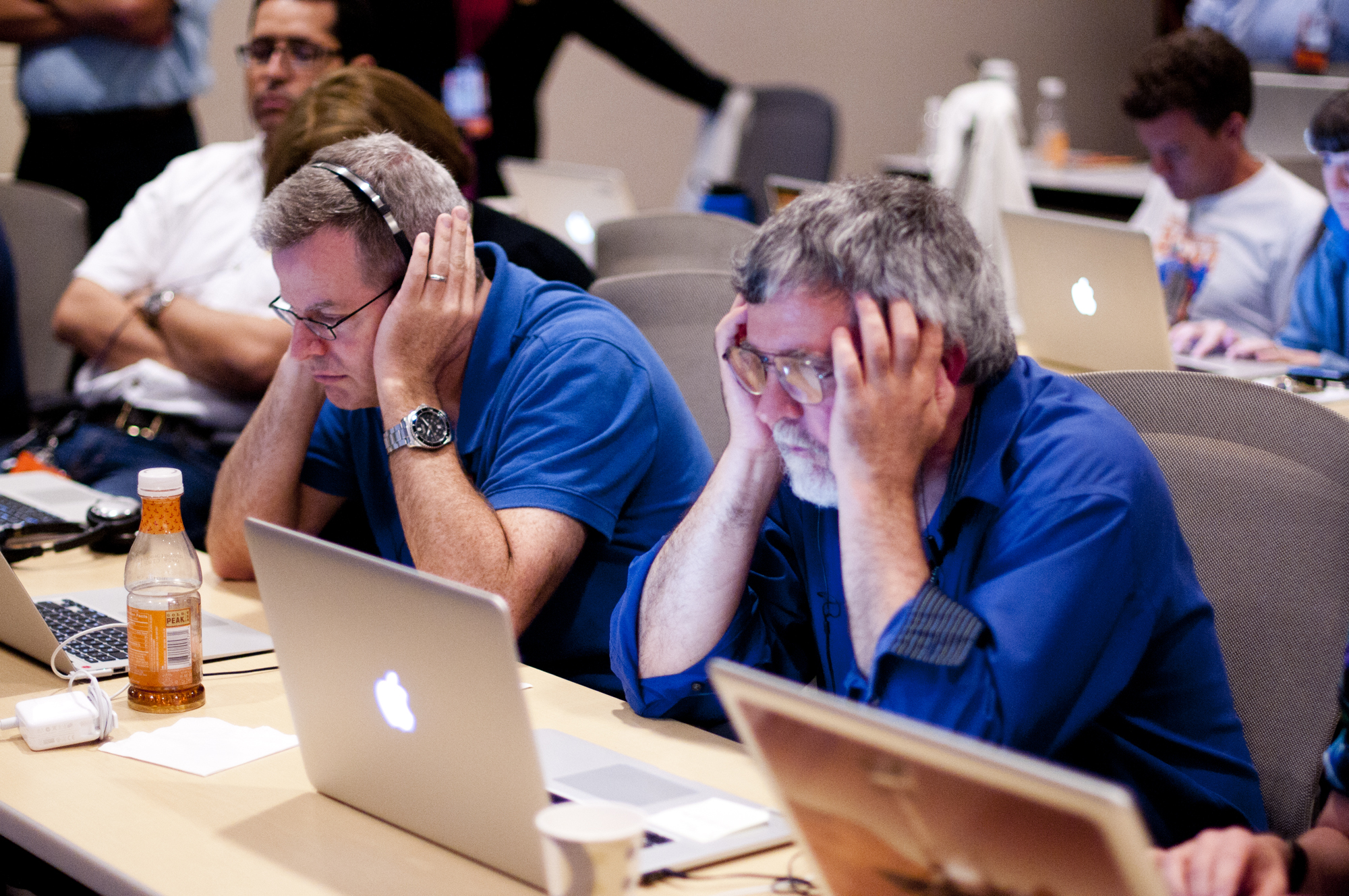 Scientists listen intently for status updates prior to Curiosity's landing.