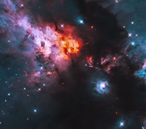 This new NASA Hubble Space Telescope image captures a jet of gas from a forming star shooting across the dark expanse. The bright pink and green patches running diagonally through the image are HH 80/81, a pair of Herbig-Haro (HH) objects previously…