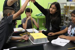 A group of elementary-aged students gather outside of Oldham County Public Library in La Grange, Kentucky, United States to look at clouds in the sky. “If anyone asks what you are doing, tell them, ‘I am a citizen scientist and…