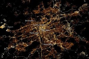 The older and newer cities of the Greater Cairo region look very different at night when viewed from above.