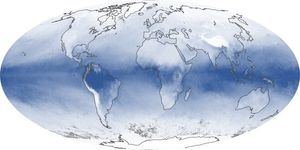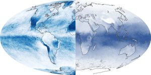 These maps show the average amount of water vapor in a column of atmosphere by month. Water vapor is the…