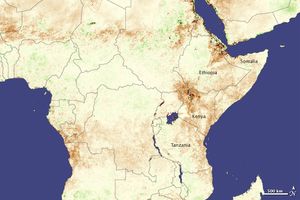 Severe drought choked East Africa, particularly Kenya, though much of 2009. This image shows the cumulative effect of the drought…
