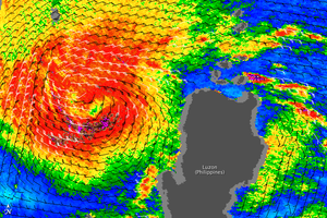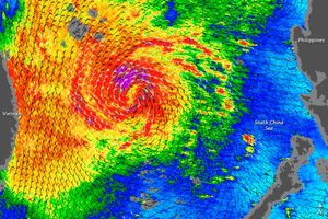 This color-coded image shows wind speeds associated with Typhoon Lupit on October 22, 2009.