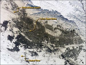 Agricultural activities and mining occur side-by-side in the Republic of Kazakhstan. This scene is located in the Turgayskaya Oblast of…