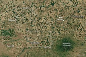 Agricultural fields in north-central Montana, where wheat grows in abundance, display captivating patterns when viewed from above.
