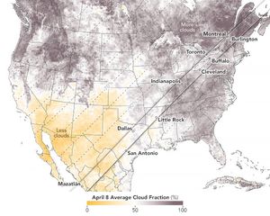 It’s not a forecast, but this map of historical cloud cover will tell you how often skies on April 8…