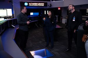 Engineers inspect Europa Clipper’s ultraviolet spectrograph (called Europa-UVS) in a cleanroom at NASA’s Jet Propulsion Laboratory in Southern California, following…