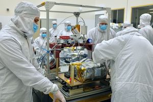 Here, mechanical engineers at the Johns Hopkins Applied Physics Laboratory (APL) in Laurel, Maryland, set up the engineering model of…