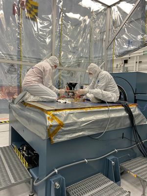 At the Johns Hopkins Applied Physics Laboratory (APL) in Laurel, Maryland, an engineer performs wavefront tests on the optical telescope…