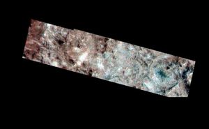 This three dimensional effect is created by superimposing images of Jupiter’s moon, Europa, which were taken from two slightly different…