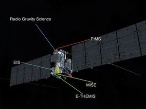 This unprocessed image shows the successful “first light” for Europa Clipper’s MISE instrument. The image was produced by directing an…