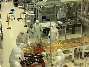 Engineers prepare Europa Clipper’s thermal imager for a series of tests in a clean room at NASA’s Jet Propulsion Laboratory…