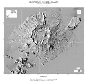 This image is a shaded relief mosaic of Umnak Island in Alaska's Aleutian Islands acquired by NASA's Airborne Synthetic Aperture…