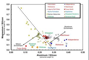 Data from the Alpha Particle X-ray Spectrometer (APXS) instrument on NASA's Mars rover Curiosity show an unusual enrichment of silicon…