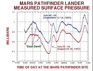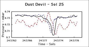 This figure shows the signature of a dust devil that passed over NASA's Pathfinder Lander on Sol 25. Since then…
