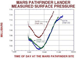 In this figure from NASA's Mars Pathfinder, you can see a significant increase in pressure on Sol 81, Sept. 25…