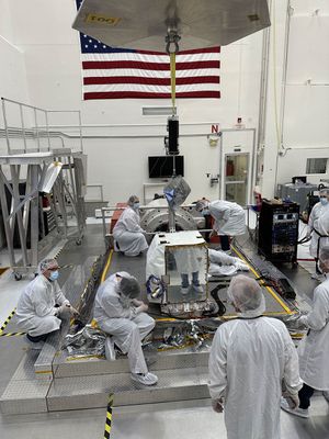 Engineers prepare the imaging spectrometer – part of an effort led by the nonprofit Carbon Mapper to monitor greenhouse gas…