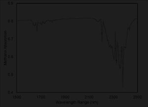 This spectral fingerprint of methane was produced from data taken during a test of the imaging spectrometer at JPL. The…