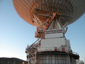 Night shot of the 70m antenna at Goldstone, California. The parabolic dish is 70m (230 ft.) in diameter. The Goldstone…