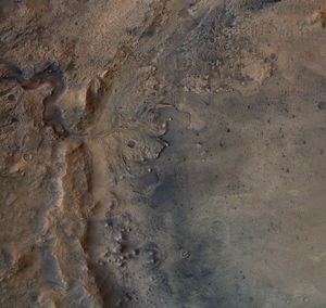 This image shows the remains of an ancient delta in Mars' Jezero Crater, which NASA's Perseverance Mars rover will explore…