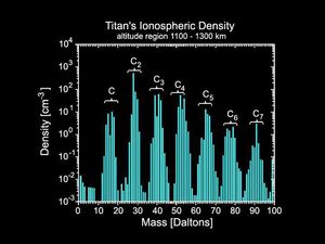 This graph shows data acquired by NASA's Cassini spacecraft as it flew by Titan at an altitude of 1,200 kilometers…