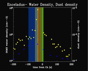 This plot shows results from NASA's Cassini's ion neutral mass spectrometer and cosmic dust analyzer, obtained during the spacecraft's close…