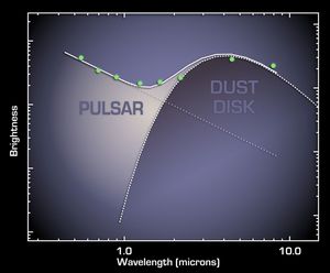 This plot shows that a pulsar, the remnant of a stellar explosion, is surrounded by a disk of its own…
