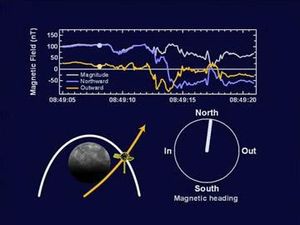 Description This plot shows the measured magnitude of the magnetic field of Mercury as MESSENGER executed its first flyby of…