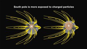 Description As a result of the north-south asymmetry in Mercury’s internal magnetic field, the geometry of magnetic field lines is…