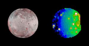 This graphic of Jupiter's moon Europa maps a relationship between the amount of energy deposited onto the moon from charged-particle…