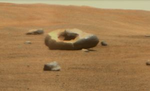 NASA's Perseverance Mars rover captured this doughnut-shaped rock in Jezero Crater from about 328 feet (100 meters) away using its…