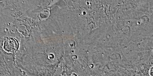 Meridiani Planum, the designated landing site for the second Mars Exploration Rover mission was seen here in its geological context…