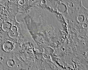 Meridiani Planum, the designated landing site for the second Mars Exploration Rover mission was seen here in its geological context…