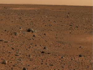 This is a portion of the first color image captured by the panoramic camera onboard NASA's Mars Exploration Rover Spirit.…