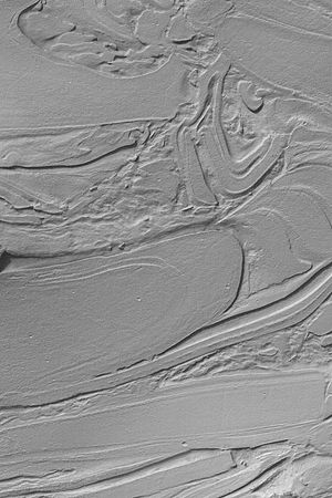 This image from NASA's Mars Global Surveyor shows strangest-looking surfaces on Mars occur in northwestern Hellas Planitia informally known as…