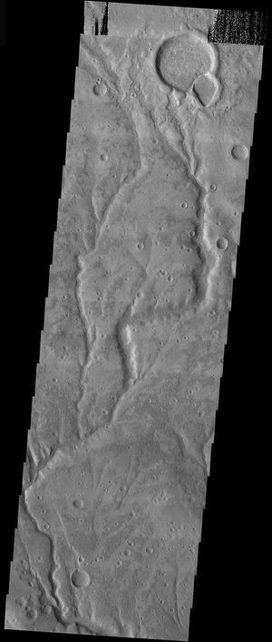 This image from NASA's 2001 Mars Odyssey released on Nov 26, 2003 shows channels and impact craters observed near Warrego…