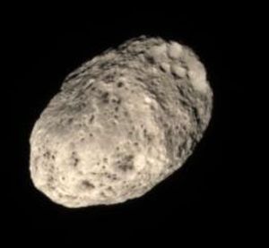 Unlike most of the dull grey moons in the Solar System, Hyperion's color is a rosy tan and looks like…
