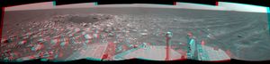 NASA's Mars Exploration Rover Opportunity captured this stereo view of a wee crater, informally named 'Skylab,' along the rover's route.…