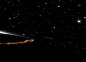 An aurora, shining high above the northern part of Saturn, moves from the night side to the day side of…