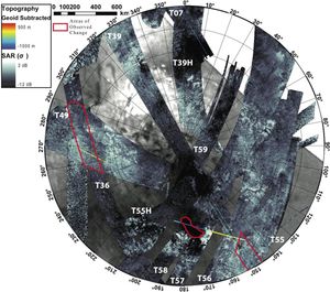 This first glimpse of seasonal change shows the southern polar area of Saturn's moon Titan, using data from the Synthetic…