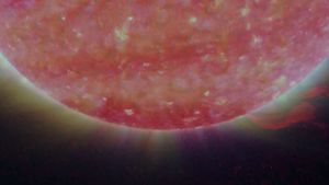 Left Limb of North Pole of the Sun, March 20, 2007 (Anaglyph)