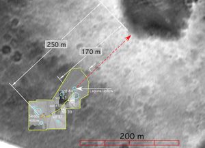 This overlay map lays navigation and panoramic camera images taken by NASA's Mars Exploration rover Spirit from the surface of…